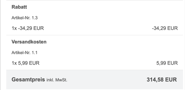 Am Ende habe ich 314,58 € inklusive der Versandkosten nach Spanien ausgegeben. Die Versandkosten fallen nur einmal an und so machen gerade die großen Bestellungen besonders viel Sinn.
