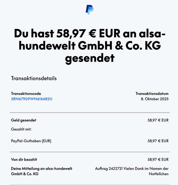Die Bestellung für unsere Rosi, die in Huelva die Streunerkatzen so liebevoll jeden Tag versorgt, die nie wegschaut, wenn ein Tier in Not ist, die konnte ich heute bei Zooplus in Auftrag geben.