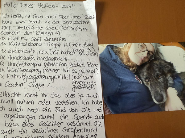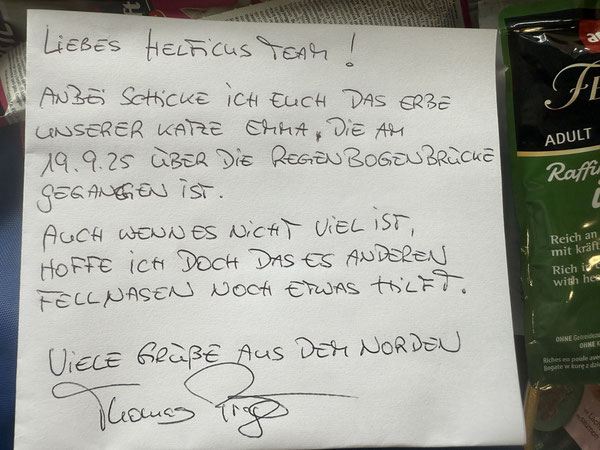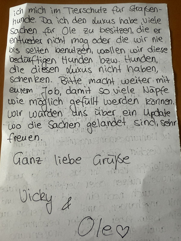 Einen solchen Brief möchte ich Euch heute zeigen. Er lag einem Paket bei, in dem wir Spenden für die Notfellchen bekommen haben.